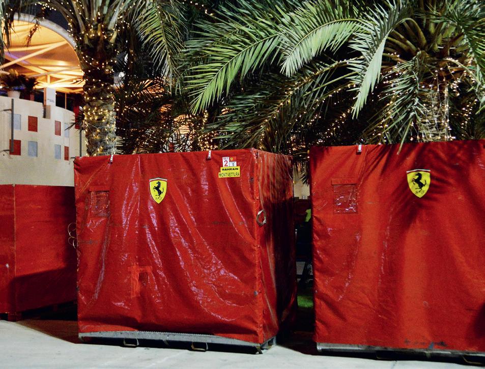 Ferrari containers ready for sea freight after the Bahrain Grand Prix
