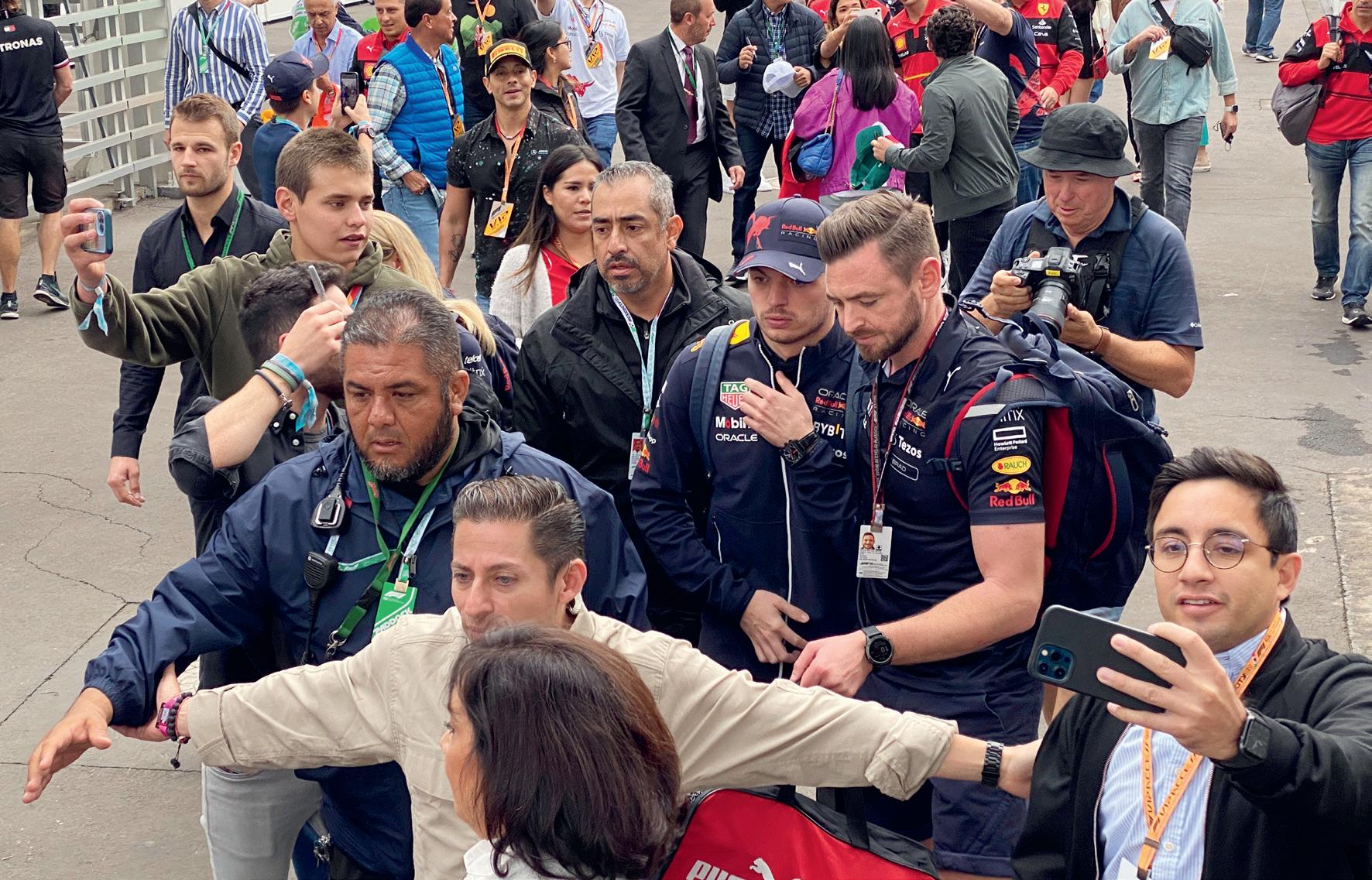 The drivers arrive in the paddock on Thursday morning. Here, fans follow Max Verstappen as he arrives for the 2022 Mexican Grand Prix
