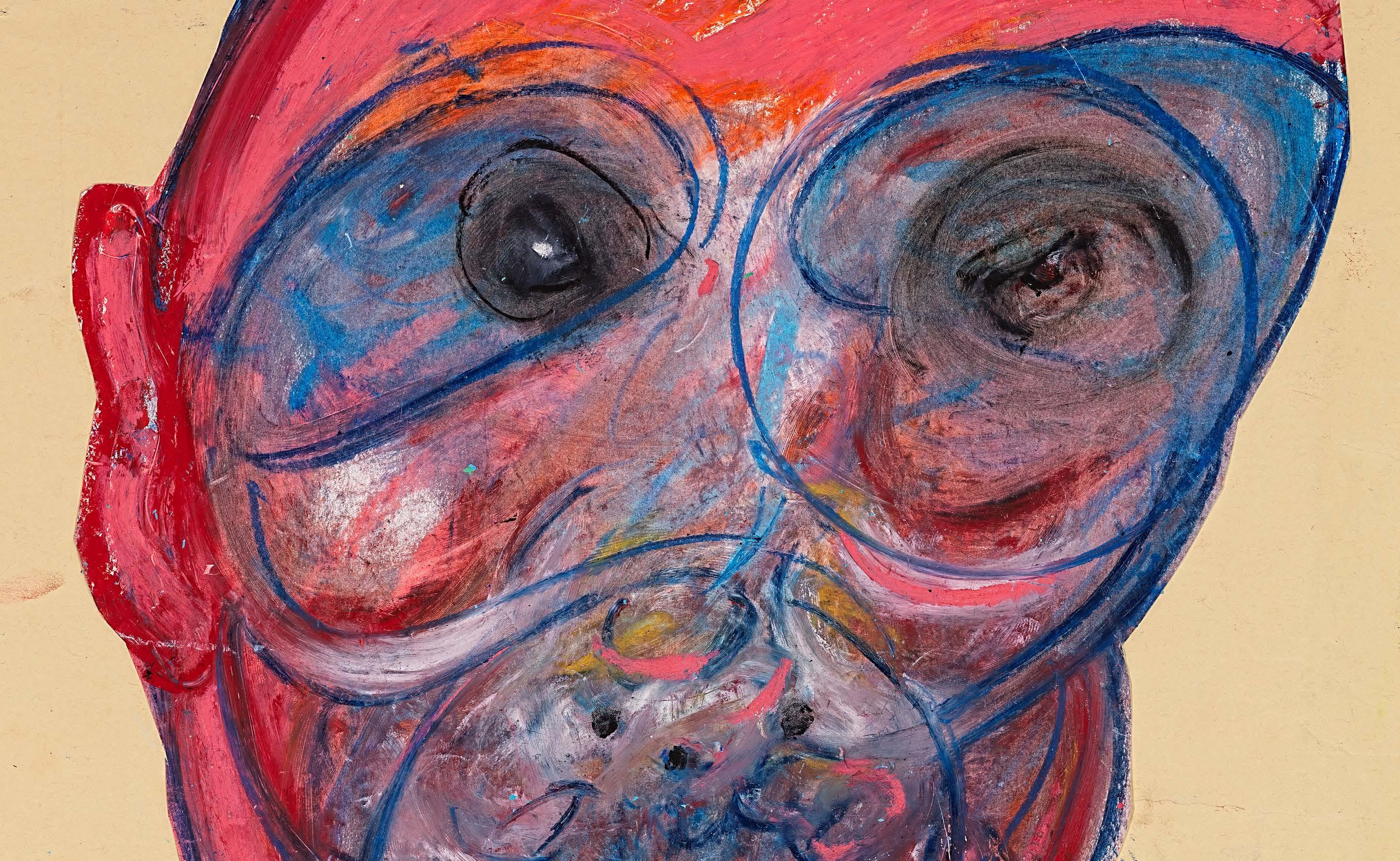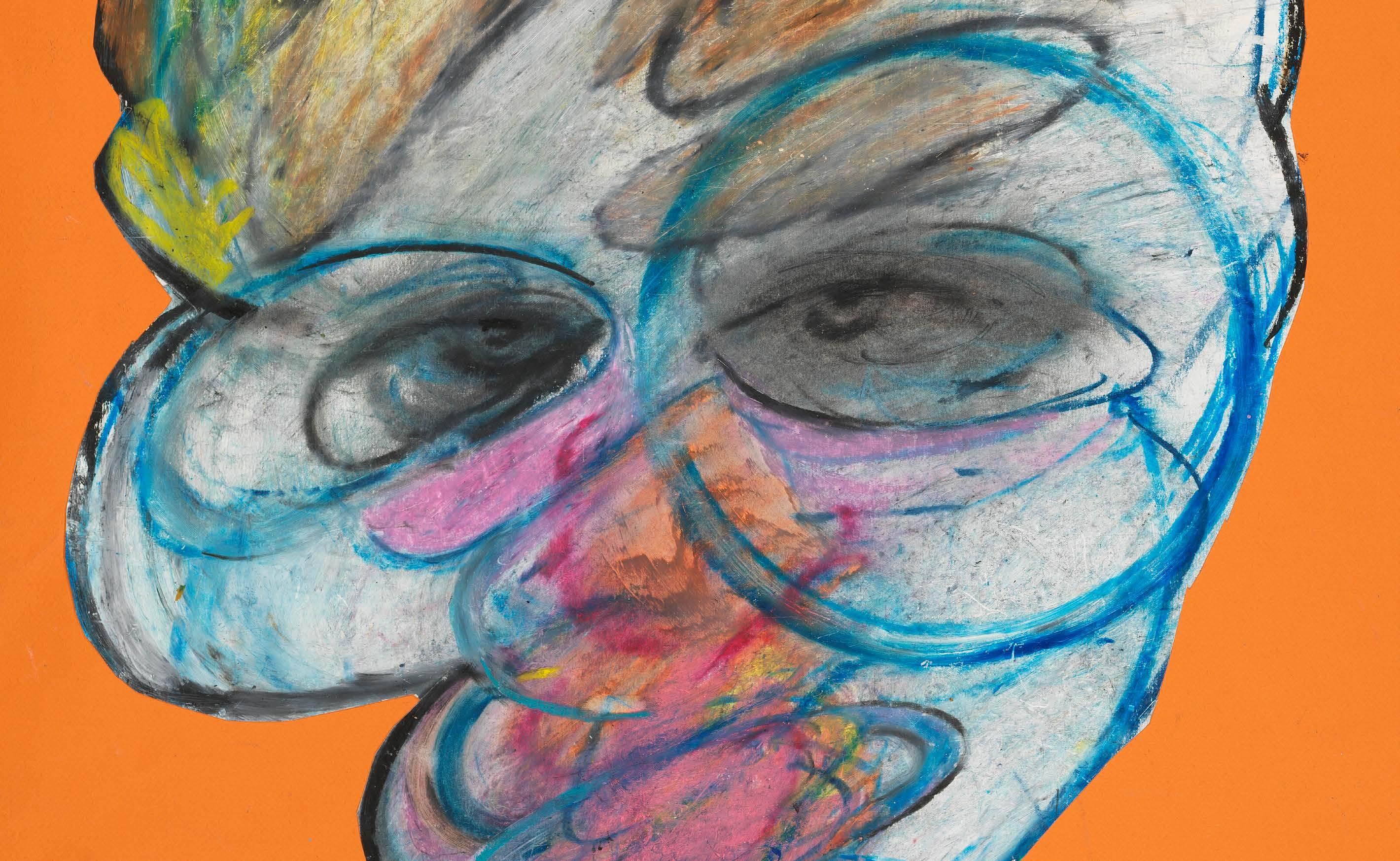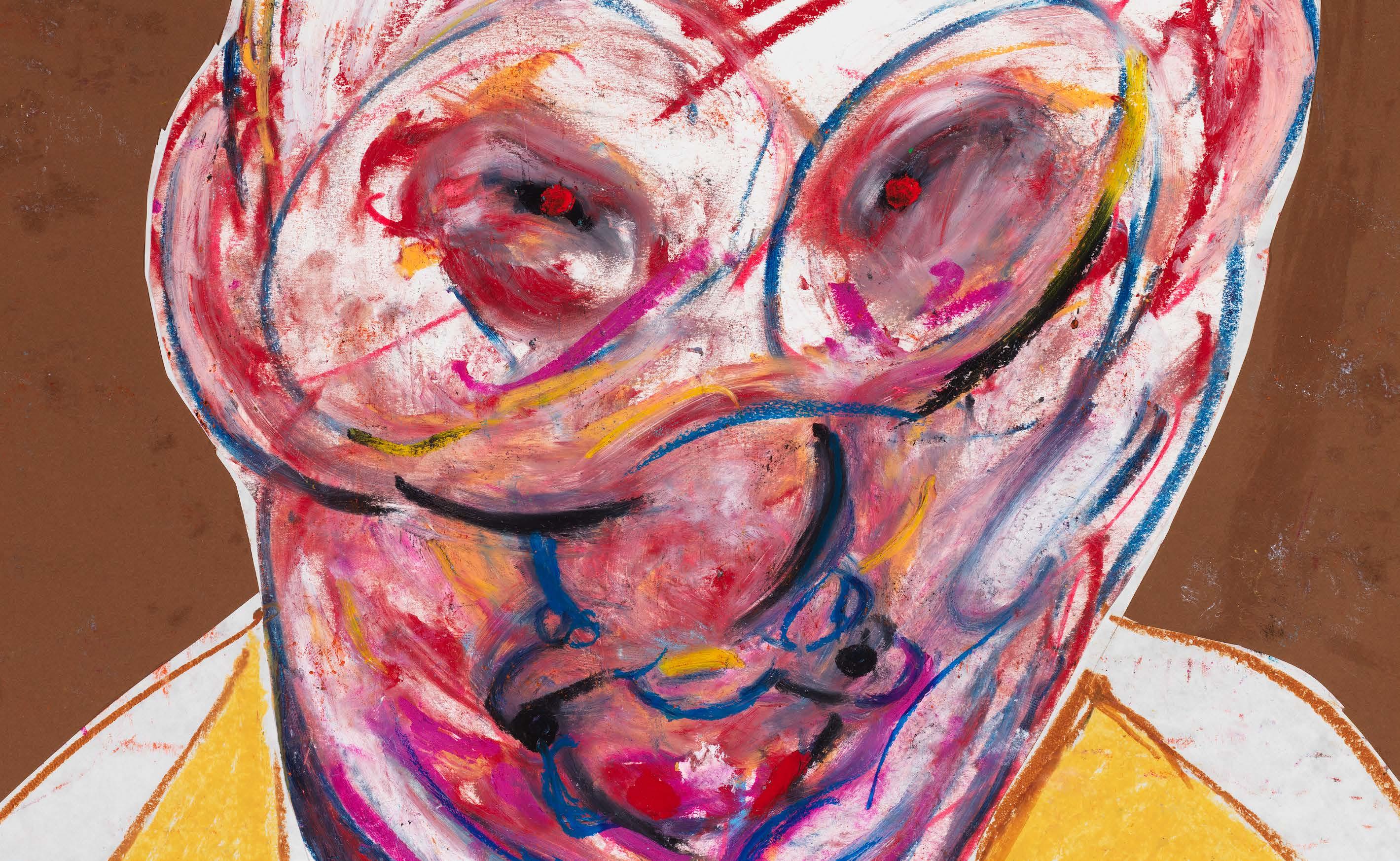 010 | Testa urlante, pastello e collage su carta, cm 70×100. / Screaming head, pastel and collage on paper, cm 70×100.