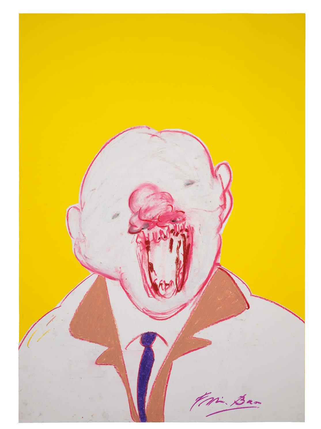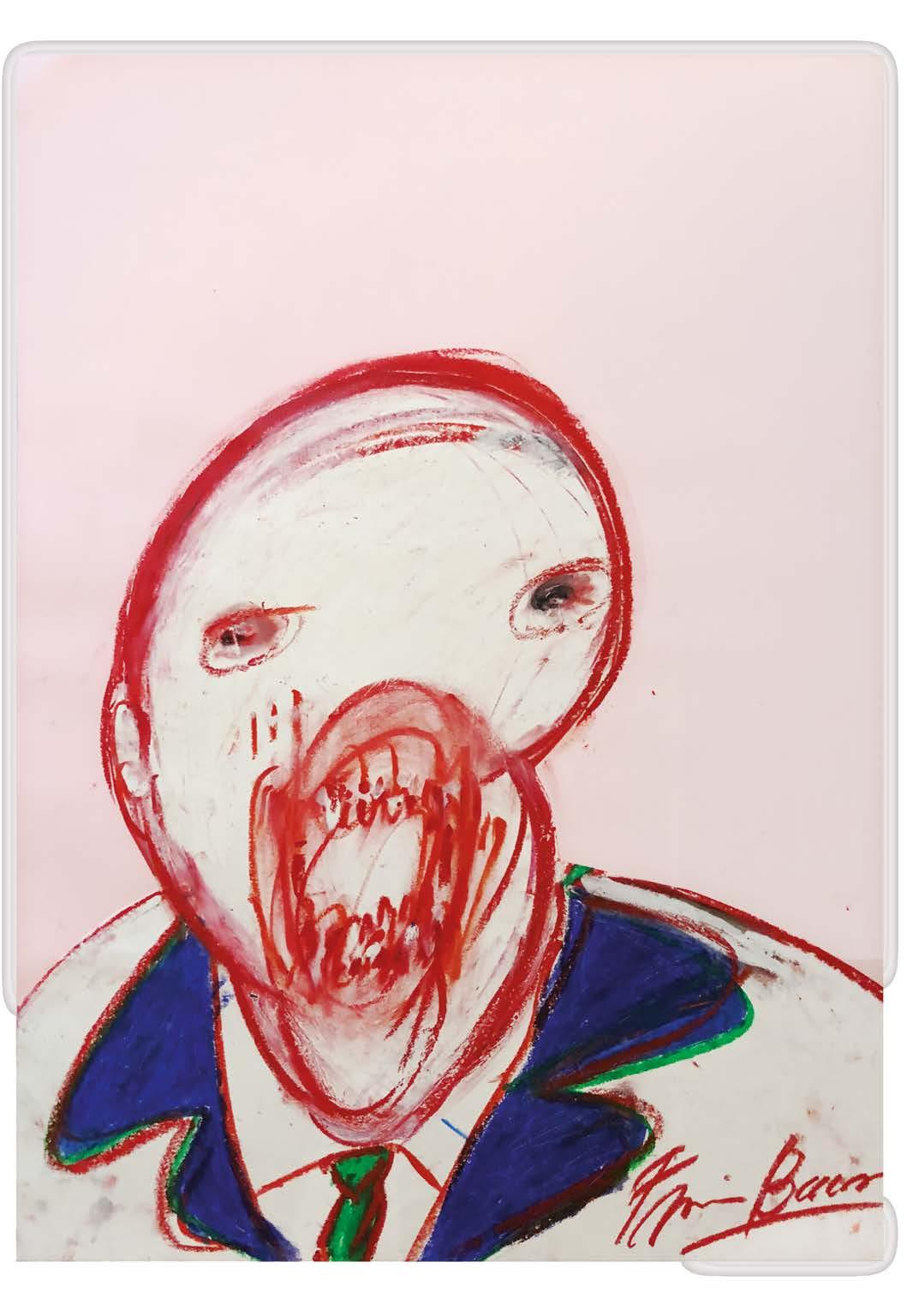 ed sunsets.”17 Bacon presents, time and again, the mouth of the Pope screaming, 18 making visible the scream that has something of an entrance into the shadows. 19 “Between civilized men—writes Bataille in the magazine Documents —the mouth has lost even the relatively prominent character that it still has among savage men. However, the violent meaning of the mouth remains in a latent state, regains its power, in a literally cannibal expression, as mouth of fire , applied to canons with whose assistance men kill each other. In the great occasions, human life is still brutally concentrated in the mouth, furors make the teeth grind, terror and atrocious suffering turn the mouth into an organ of wrenching screams. It is easy to observe that the deranged individual pushes his head and stretches frantically his neck, so that his mouth is located, as much as possible, as a prolongation of the vertebral column, that is to say, in the position that it occupies in its animal condition , as if the explosive impulses should arise directly from the body and through the mouth in the form of vociferations.” 20 Certainly, Bacon sets his obsessive gaze, in those dread-inducing portraits, on the mouth, leaving aside the traditional conception of the face, 21 ushering a reality mediated by convulsive countenances.