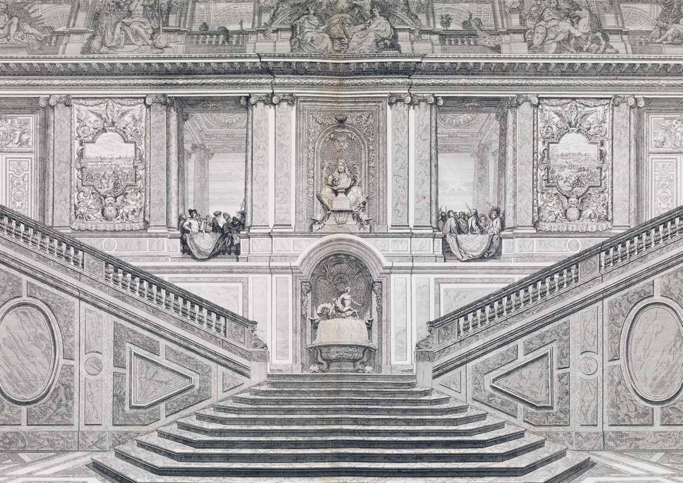 The Escalier des Ambassadeurs in Versailles in an etching made by Louis Surugue in 1725, (p. 36-37).