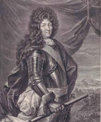 Portrait of King Louis XIV in armour, engraved by Gerard Edelinck after a painting by Jean de la Haye (detail).