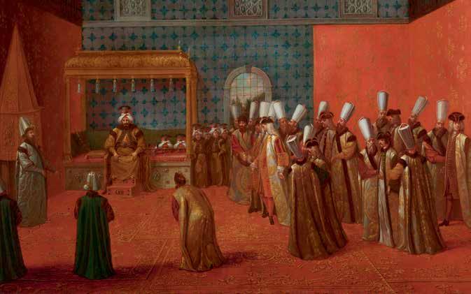 Western artists often worked in Istanbul in the 16th and 17th centuries. However, they rarely had an opportunity to get a glimpse of the Ottoman court, let alone meet the sultan in the flesh. One artist was however lucky enough to do so: Jean Baptiste Vanmour (1671-1737), a Flemish-French painter who worked in Istanbul for many years. His paintings of people, interiors, towns and landscapes are an important cultural and historical source. In 1727 Vanmour accompanied the Dutch ambassador, Cornelis Calkoen (1696-1764), to an official audience with the sultan, Ahmed III. On this unique occasion, the painter was able to see the sultan with his own eyes. Afterwards, he painted a series of scenes at the Ottoman court for Calkoen. They included the reception of the ambassador and his retinue, and a full-length portrait of the sultan.