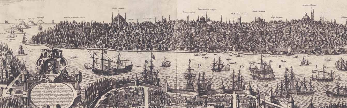 Detail of a 1616/1617 etching by Pieter van der Keere depicting a panorama of Istanbul, which was probably lost when Heemstede Castle was demolished in 1810 (detail).