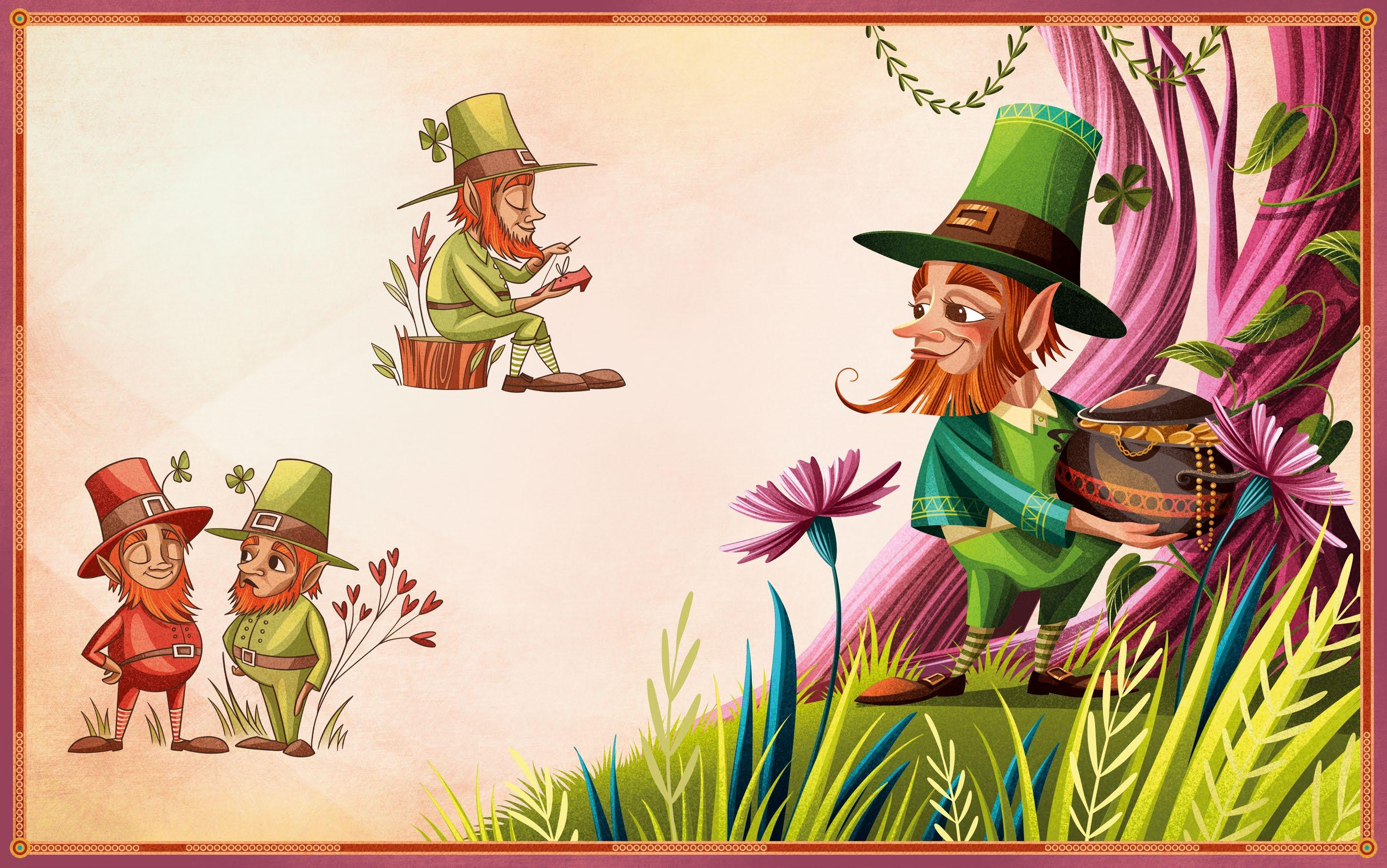 Lots of legends revolve around them. The most famous one concerns the pot of gold that leprechauns love to hide at the end of the rainbow (and that everyone would like to find!). These creatures are always on the move and they’re also a little mischievous (actually, a lot!). They’re even very funny. No one knows what their houses look like, but they’re sure to be full of pots and pans and fantastic treasures.