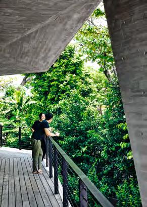 More importantly, in a tropical context defined by intense sunlight and high humidity, lattice-like sunscreens diffuse the harsh western daylight entering the habitable areas, reducing cooling loads while engaging an interplay of light and shadow. Key communal spaces were also designed to be opened externally on two ends to be cross ventilated and passively cooled. To embrace the idyllic spirit of tropicality thus goes beyond the integration of landscape and architecture, and also takes into consideration the enclosures of space that defines thermal comfort.