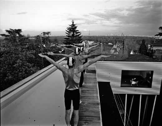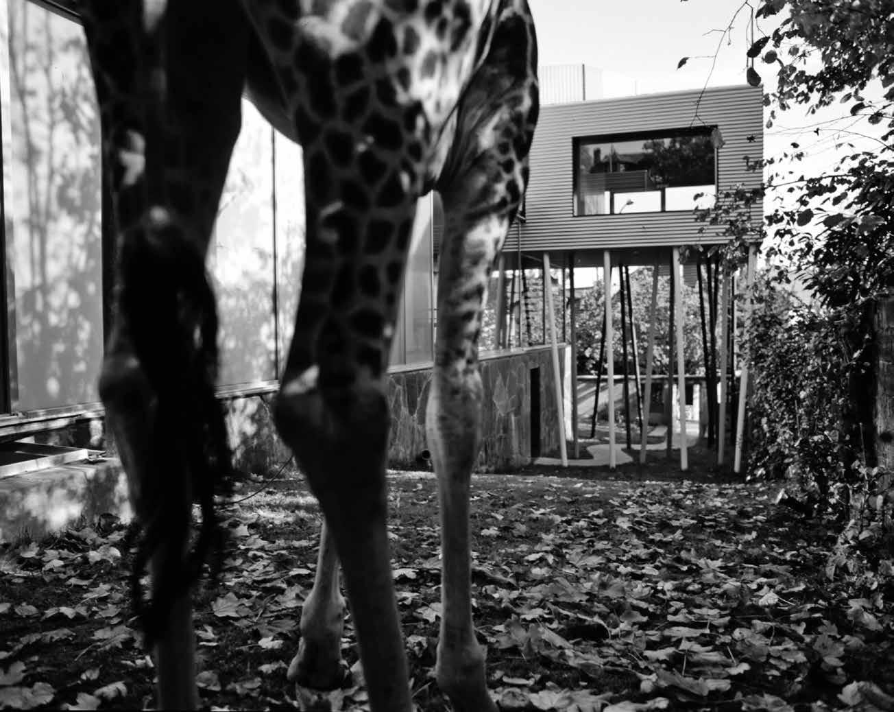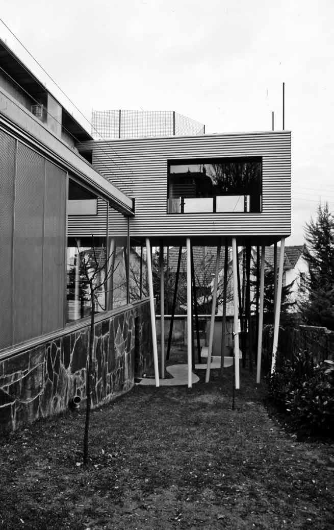 around. The pick-up sticks at the entrance, the twisting stairs in the hall, the translucent apron around the kitchen, the pipework spilling like entrails over the shower wall, the oculus at the foot of the swimming pool – her presence seems suddenly to bring out all the strangeness, the irony of the place. Belle de jour, belle de nuit. The tour pauses in the Bs’ bedroom, in front of the striped ply that covers a partition wall: ‘There wasn’t much money left over for the interior. Which gave us the chance to experiment’, the young architect explains, his cheeks ablaze. She sketches a dreamy smile.