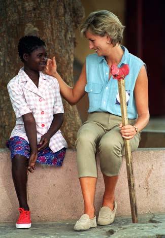 202 and 202-203 Diana in Angola in January 1997. The country was destroyed by twenty years of civil war and millions of landmines were scattered a bit everywhere. Diana strongly supported the eradication of minefields, just as she had done in Bosnia. She did not limit her contribution to merely posing for photographs, but actually risked being hurt by walking in single file together with deminers in fields that had been only partially cleared and by meeting the victims of the explosions. While speaking about her commitment to humanitarian projects, she said: âI don't consider myself the queen of this nation. Iâd like to be a queen in people's hearts.â