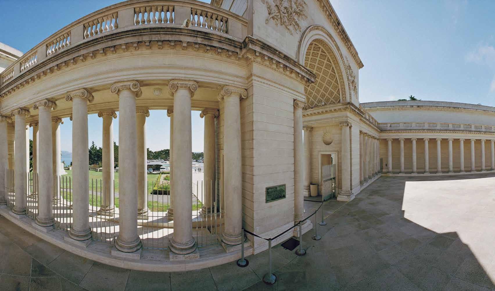 The exception to this is theater auditoriums. Here the panoramic technique truly comes into its own, rendering something marvelous out of the merely quotidian. The California Theatre in San Jose, the Alameda Theatre, and the Paramount Theatre in Oakland all become magically exciting when we can sit within full view of the other seats around us as well as the stage. Perhaps it’s the inherent artificiality of the locations, the gilt and velvet and rococo decor that characterize theaters in general. Perhaps it’s something about the relationship between movies and the still camera (a relationship that has also inspired one of Hiroshi Sugimoto’s most trenchant series of photos). Or perhaps it’s the way the serried ranks of seats arrange themselves in beautiful unearthly curves at Schiff’s request. I don’t know why I find these pictures so moving, but they seem gorgeous and captivating in a way that many of the other interiors—even the fanciful missions and cathedrals—are not.