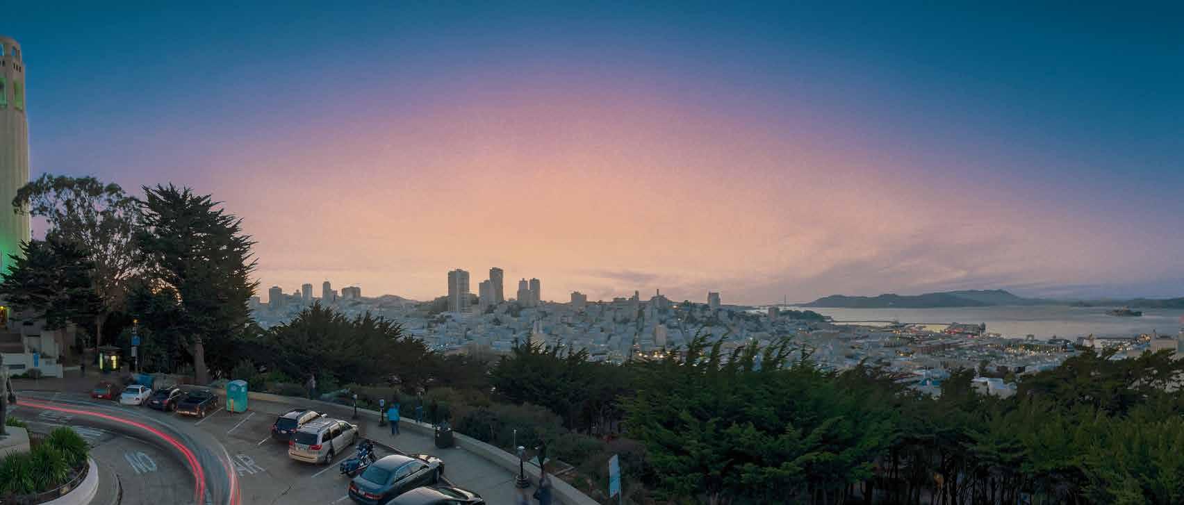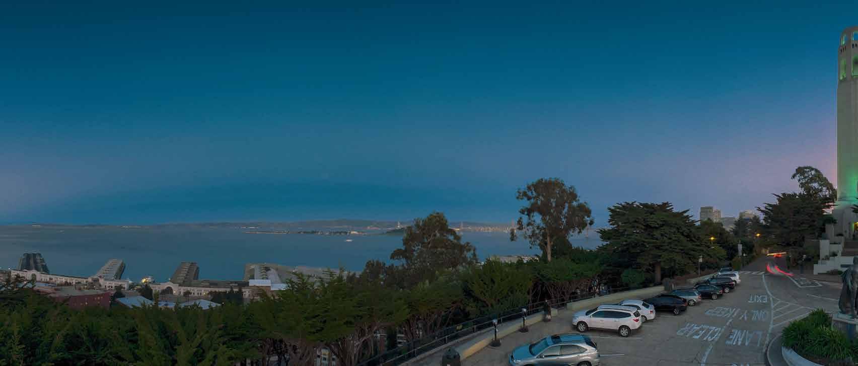 My favorites, though, are the scenes taken outdoors, which present us with a strange new city buried beneath or hiding behind the old one. To see the Chinatown gate enclosed in the arms of its neighboring corners and streets is to see it given new life; there is something charmingly Parisian about it, in this view (p.38). Davies Symphony Hall, sitting smack in the middle of a slice of Civic Center, exerts its peculiar roundness in a way I have previously only felt it do from inside the building (pp.40-41). Nob Hill looks so little like itself that what might threaten to be a photographic platitude— “elegant San Francisco neighborhood at sunset”—becomes something much stranger and more interesting (pp.162-163). Schiff gives us the city turned inside out, upsidedown, ass-backwards. For a place that has always prided itself on its beauty, this is no bad thing. We need to look freshly at what is around us to decide what we might actually want to keep and what we are willing to lose. We need, at least for a time, to stop thinking of space as a personal thing we carry with us, as something belonging to us individually. Schiff’s photos can lead us in that direction.
