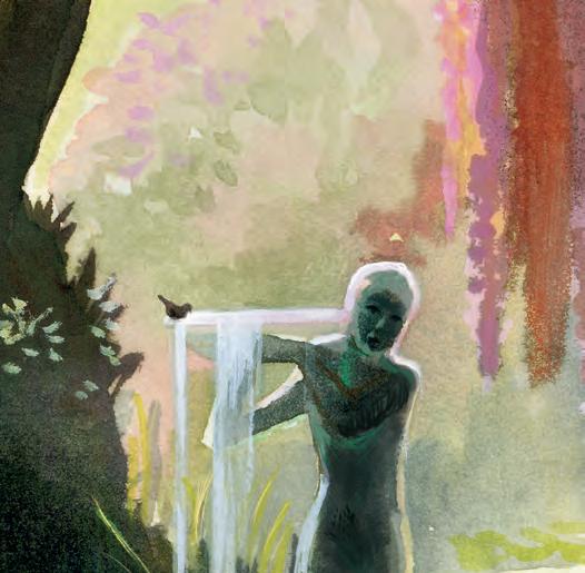 When they were finished, Martha put the sheet of paper and shillings Mary had given her into an envelope and promised she would give it to the baker’s boy and that Dickon would return soon with the items Mary had requested. And he did. After a fretful few days waiting for something to happen, Mary was walking along a path into the woods when she spied a boy sitting in a tree. He was playing a wooden pipe and some animals had gathered around him to listen. Mary had never seen anything of the kind. When the boy became aware of her presence, he gestured at her not to move, then finished his melody and climbed down from the tree.