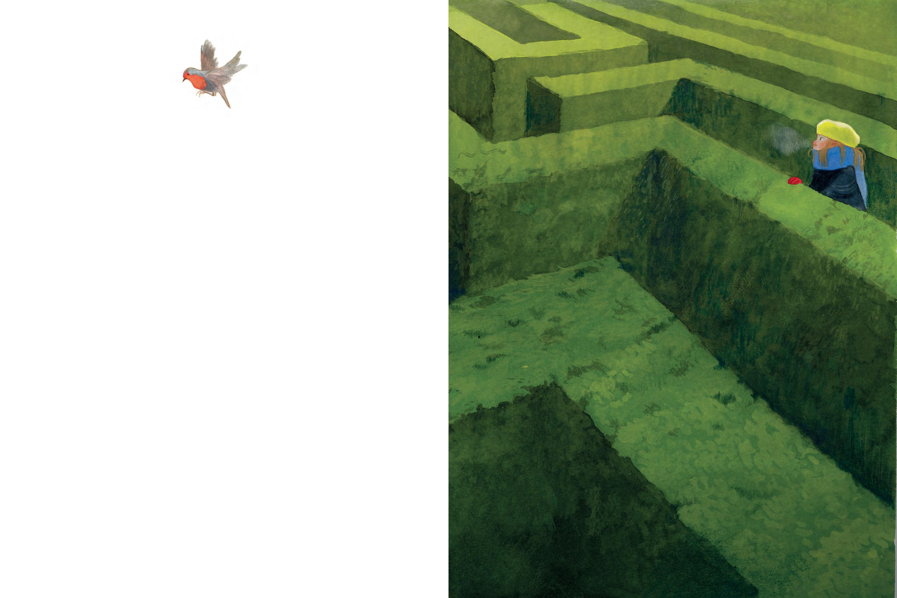 She looked carefully at everything around her and often played with the things she found. From time to time, she would bump into the gardener, Ben, but never dared to address him as he always seemed to be in a bad mood. She spent most of her time with the robin and would chatter to him about all sorts of things, as if they were old friends.