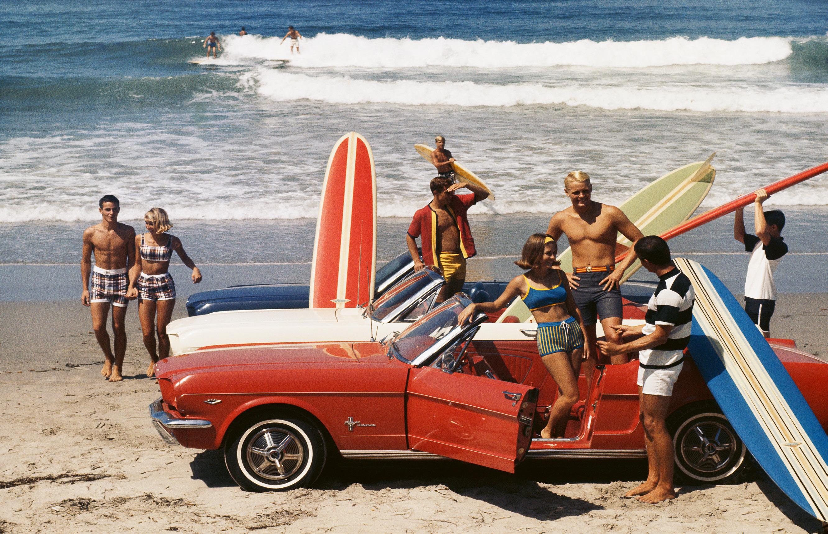 This page: Pamela Anderson on the beach during television’s BAYWATCH Celebrities Surfing Event, Malibu, California, 1993.
