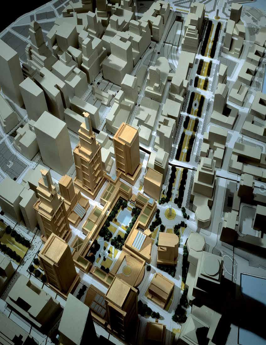 frontispiece: Model view of the Peterson Littenberg final design showing the relationship between the Public Garden and West Street Boulevard. Model photo: Jock Pottle.