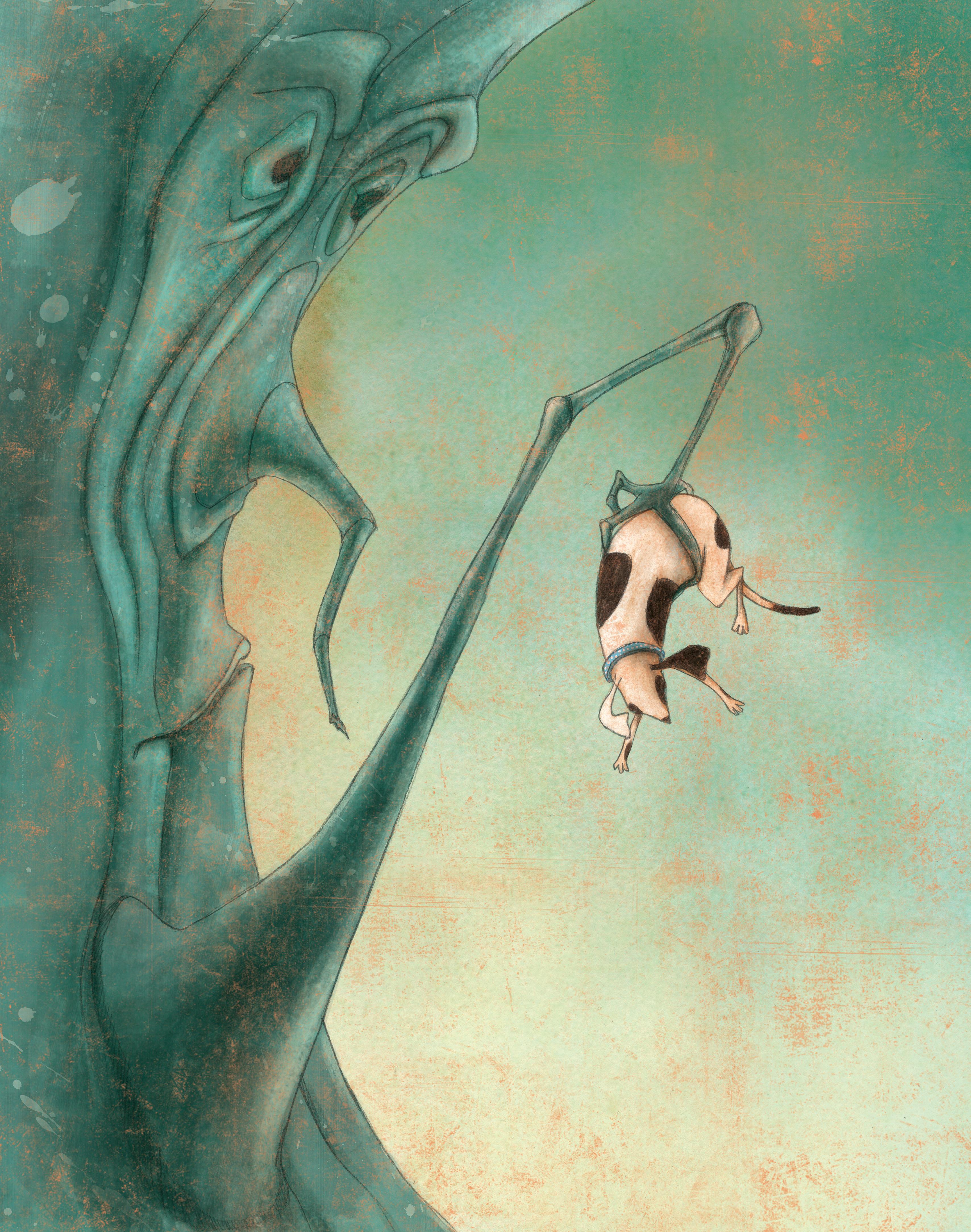 The Scarecrow was well padded, and he was not hurt, but when the branches grabbed Toto, the dog began to yelp in pain.