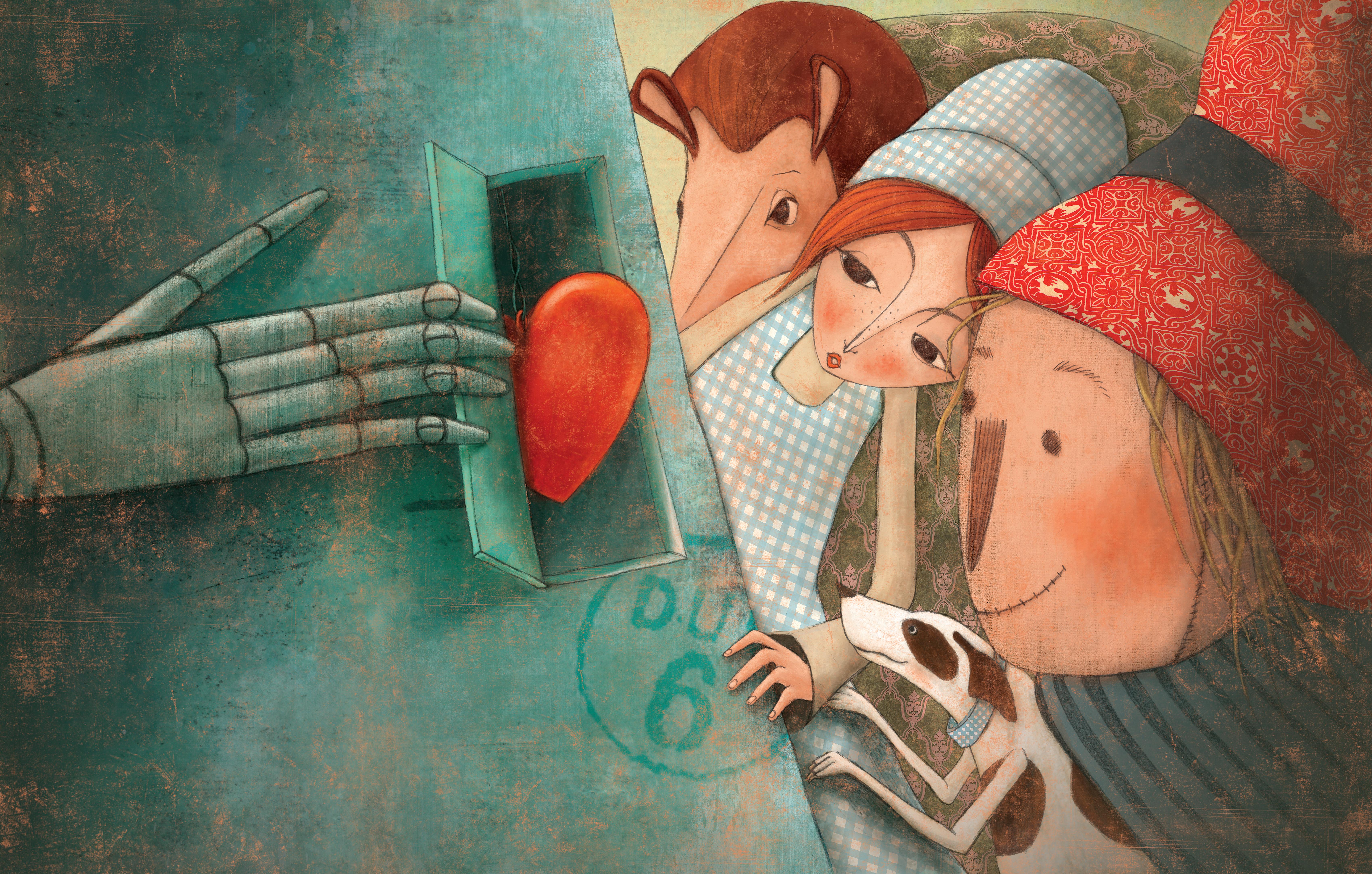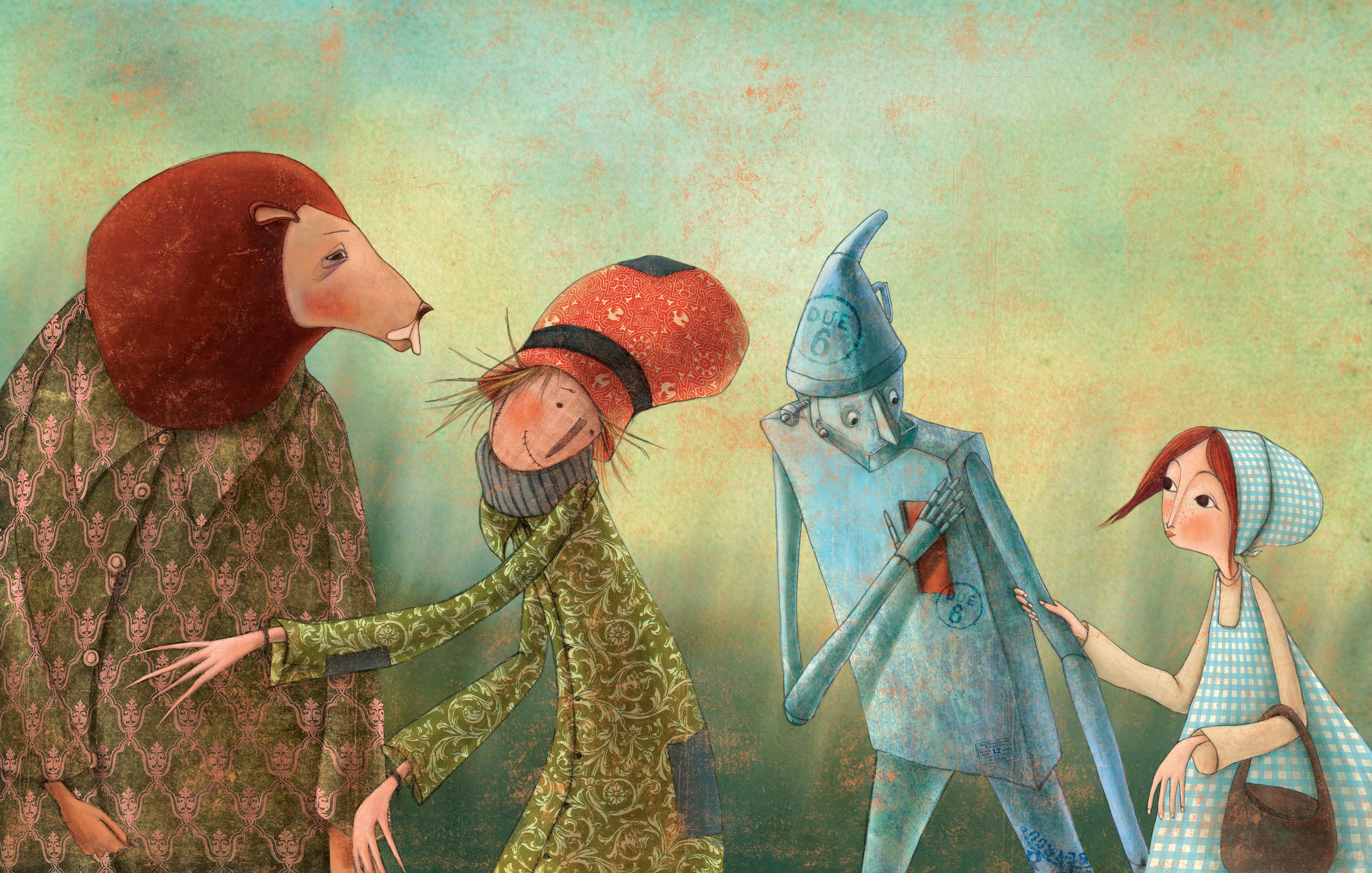 “This means that you have a heart. You are very lucky for I don’t have one anymore,” interrupted the Tin Woodman. “And I don’t have a brain!” said the Scarecrow. “And I want to go home. This is why we are going to the Emerald City: we are going to meet the Wizard of Oz and ask him for a brain, a heart and to send Toto and me back to Kansas,” concluded Dorothy.