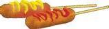 These oblong shaped sandwiches of soft bread with a kind of sausage inside are served with mustard, ketchup and other sauces