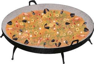 Spain’s national dish originated in rural culture, where the few ingredients that were available were cooked together in one iron pan and served for dinner. So it was that rice was combined with vegetables and fish, but with fowl and poultry as well. At the end of the 19th century paella was sold in food stands on the beaches in Valencia and Alicante, and thanks to tourists, it soon made its way to the rest of Spain. The pan used to make paella is called paellera. It is large and shallow with two thin handles.