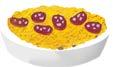 A rice dish with stewed duck is covered with slices of chorizo and baked in the oven to give it a crunchy crust. It is typical in Portugal’s hinterland.
