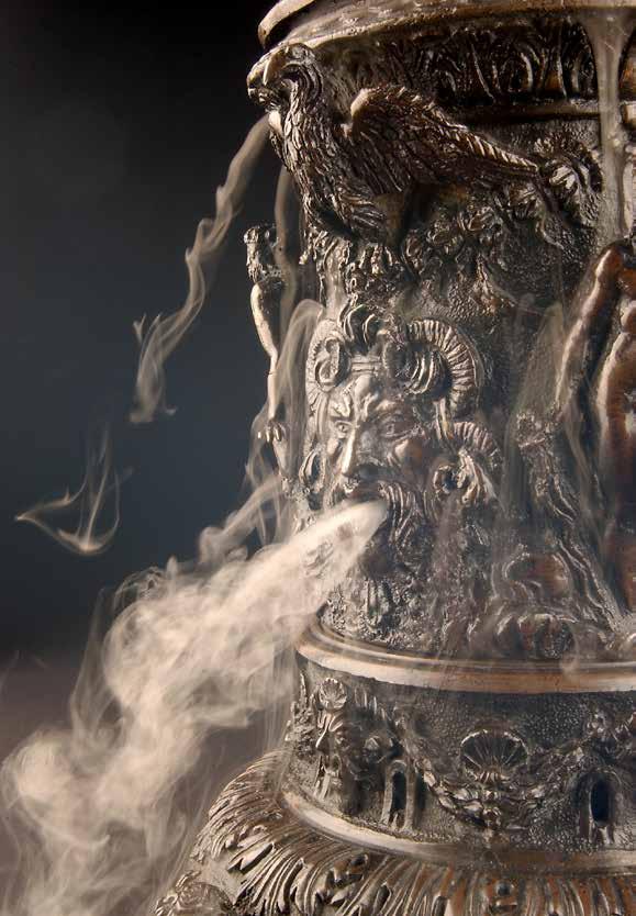 This beautifully-made and perfectlyproportioned two-handled vessel is a masterpiece of modelling and casting. Under each handle is a fleur-de-lis, suggesting a French origin, whilst around the centre of its body runs the Hebrew inscription which has secured the Bodleian Bowl’s fame as a rare and significant document for the once-flourishing Jewish communities of Medieval England and France. The vessel is supported on three feet in the approximate form of animal hooves, above each of which is a vivid pictogram in relief depicting, respectively, a bird, an antlered deer and a chrysanthemum-like symbol.