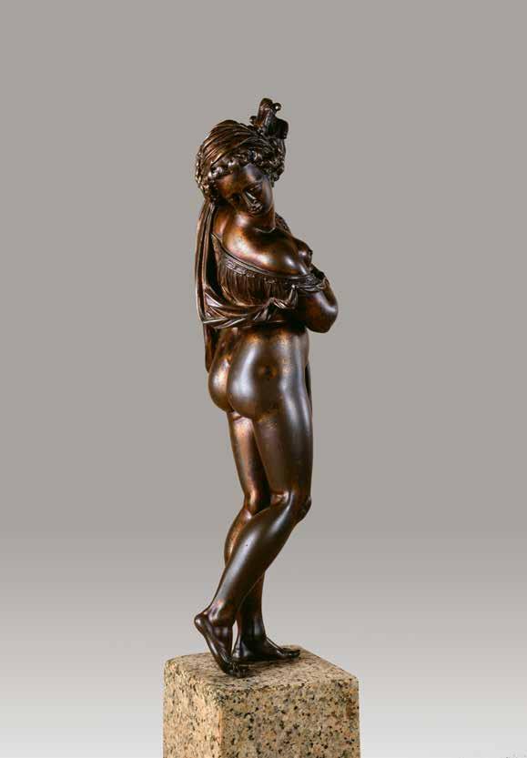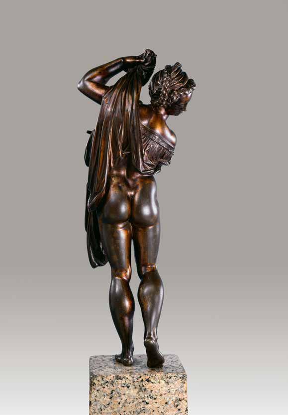 have known or even owned a version of this very model. On the death of his second son Ludovico in 1510, just a few years after his father, an inventory was made of Ludovico’s belongings in the family house just outside Mantua. Many items inherited from Andrea were listed in the inventory, including just a single bronze. Kept with other objects in a walnut chest, it was described as ‘a small figure in bronze with an arrow in its right hand and a drapery over the other arm’.