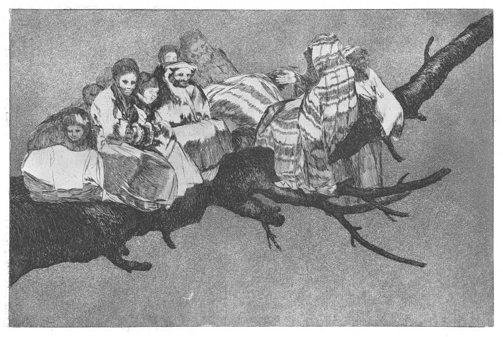 Te Follies, also known as Proverbs (in Spanish Los disparates or Los proverbios) are the most enigmatic and disturbing of all Goya’s prints. Created between 1815 and 1823, at the same time as Goya was covering the walls of his farmhouse with the Black Paintings, it was not considered safe to publish them at the time. Goya went into exile in 1824, leaving the plates behind.
