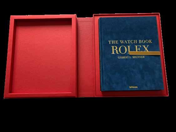 Inspired by a true Rolex watch packaging: the special edition in blue velvet with the title embossed in gold, presented in a vegan leather box with highquality hot foil stamping and red Wibalin lining