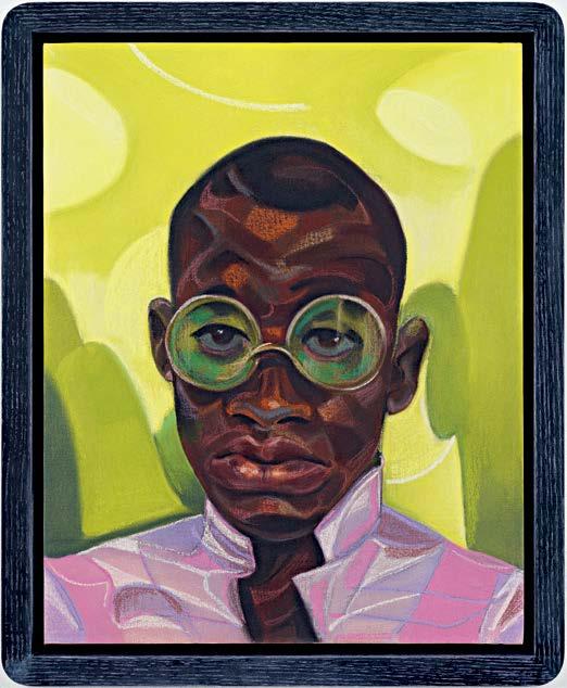 Toyin Ojih Odutola, Ààlà (Accidental Boundary), 2022 – 2023, Pastellkreide und Kohle auf Gesso-grundiertem Leinen auf Dibondplatte / pastel and charcoal on gessoed linen over Dibond panel, 48,5 × 61 cm (ohne Rahmen / without frame), Courtesy of the artist and Jack Shainman Gallery, New York, NY