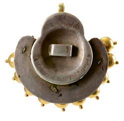 The top part of the reverse shows a rigid tubular element alternated with four large hollow beads decorated with a granulation pattern.
