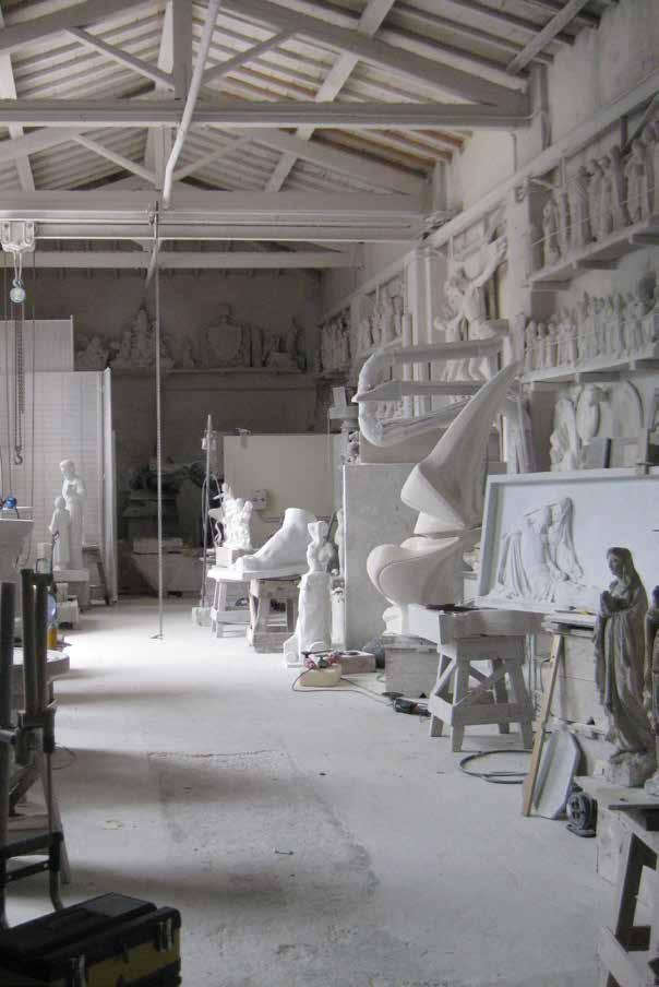 While “Carrara” is usually used to describe the marble itself, there exists a network of specialized towns in the region, centered around the processing and transportation hub of Carrara. Much of the industrialized cutting operations associated with the marble used for construction and commercial purposes takes place in the city of Carrara, located between the mountains and the Ligurian Sea. The quarries themselves are located farther east in the mountains, while other towns in the alluvial plains such as Pietrasanta specialize in the sculptural marble-working craftsmanship of the marmistas, or marble carvers.
