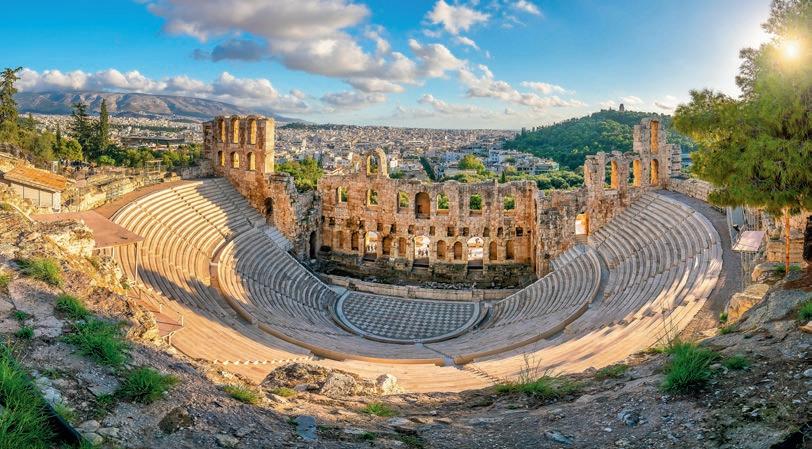 bottom On the southern slope of the Acropolis, the Odeon is a small theater from the 2nd century built by Herodes Atticus in memory of his wife Regilla. It's still used for concerts, especially in the summer.