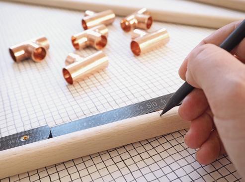• Six T-connections of copper pipe with an inside diameter of 18 or 22 mm (from the plumbing department at the hardware store)