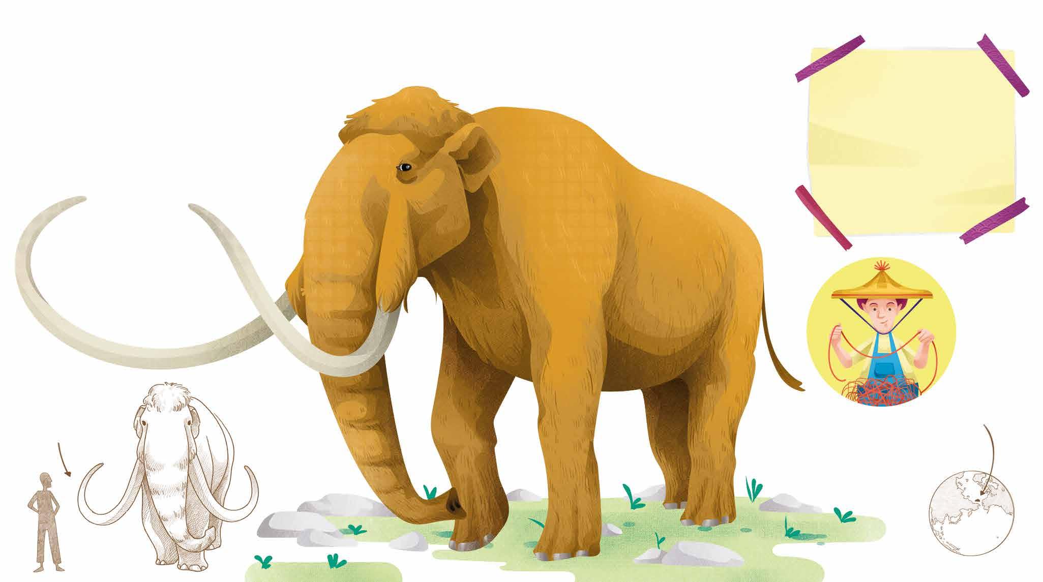 Woolly mammoths were about the size of an elephant. They had a double layer of fur to protect themselves from the cold of the frozen steppes of Asia, Europe and North America, their natural habitats.