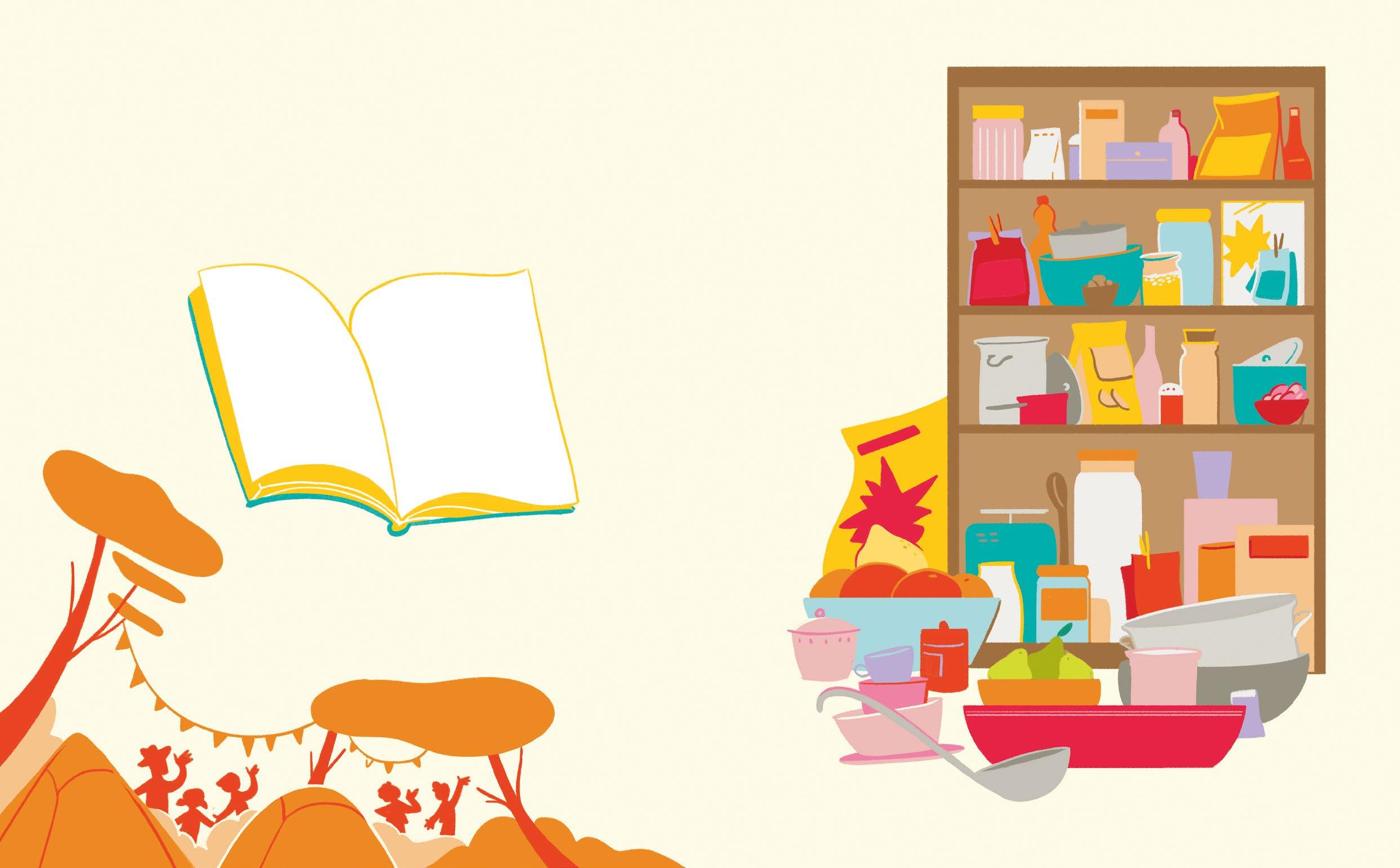 “Oh no! We can’t make a cake without eggs and butter. Lis, Haru, can you go and buy the missing INGREDIENTS ?
