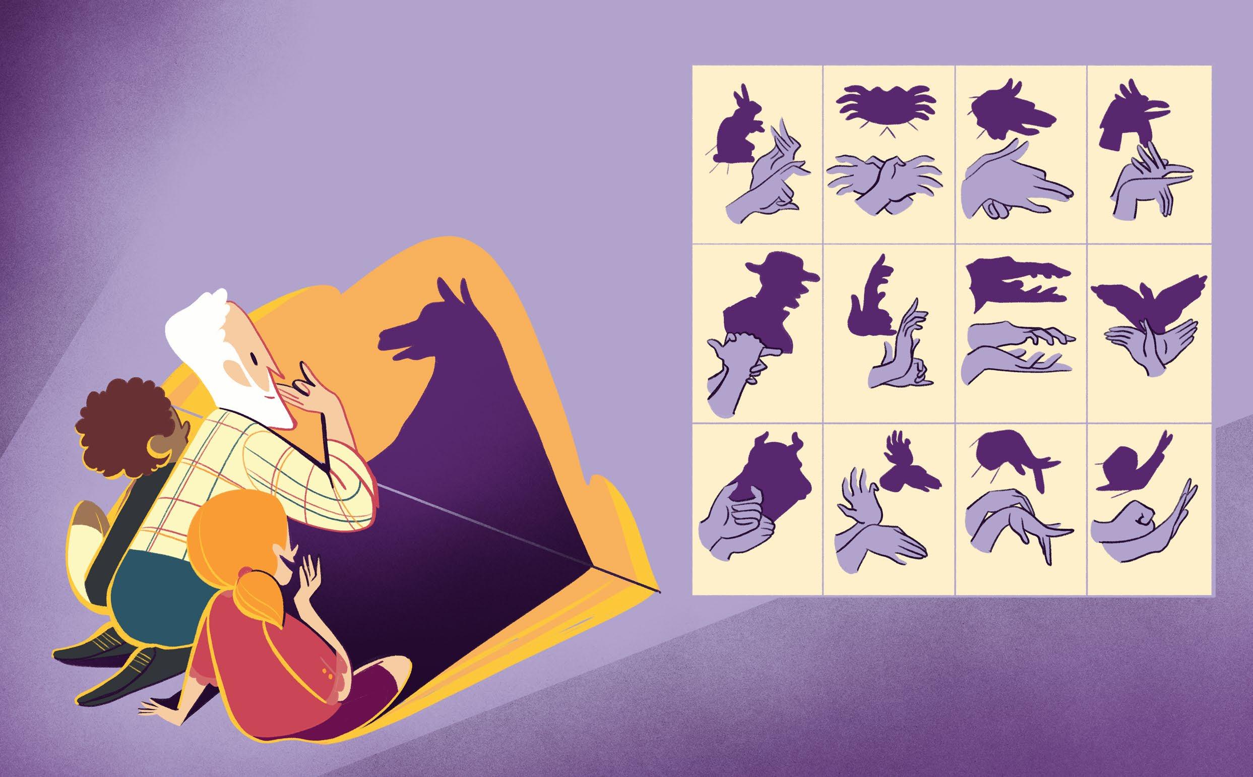It’s time to play with the flashlight! Grandpa is a master at creating shadows with his hands. LOOK CAREFULLY at all the shadows he creates for his grandchildren, and then cover them with your paddle.