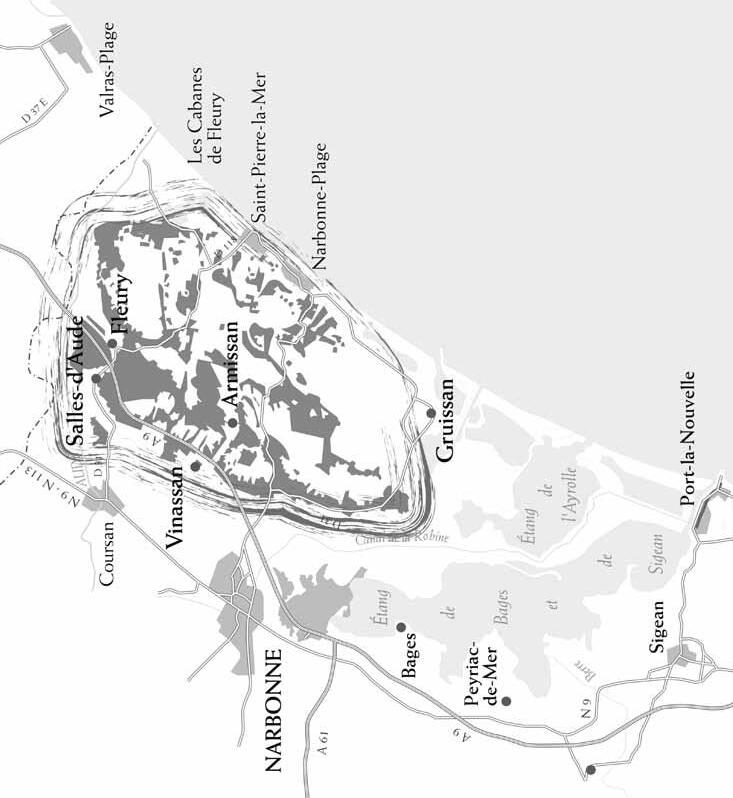 Corbières is still the largest appellation of the Languedoc, and indeed the fourth largest appellation of France, after Bordeaux, Côtes du Rhone and Champagne. The vineyards cover a large expanse of hilly land to the south-west of the city of Narbonne. In the north, they are limited by the Aude valley and the Canal du Midi, and touch the appellation of Minervois. To the south, the departmental boundary with the PyrénéesOrientales separates Corbières from Côtes du Roussillon. Vineyards of the much smaller appellation of Fitou are interspersed in some of the Corbières villages. The countryside is wild and dramatic, and the terrain is harsh so that only vines and olive trees, as well as the vegetation of the garrigue, will grow there. Two mountains dominate the skyline, the Montagne d’Alaric in the north and Mont Tauch to the south. The name Corbières not only describes the wine but also the hills that are really the first foothills of the Pyrenees. Those are never far away, especially on a clear day when the snow-capped peaks form a dramatic backdrop. There is much to explore in the Corbières. Lagrasse is a picturesque village, with narrow, cobbled streets, a Roman bridge over the Orbiel, an old market hall, and a Benedictine abbey. The magnificent Cistercian abbey of Fontfroide is worth a journey, as the Michelin guide would say, for its cloisters and rose garden, and it also produces wine. Ruined Cathar castles, Aguilar, Quéribus and most majestic of all, Peyrepertuse, built on inaccessible hills, dominate the countryside as imposing reminders of the land’s troubled past.