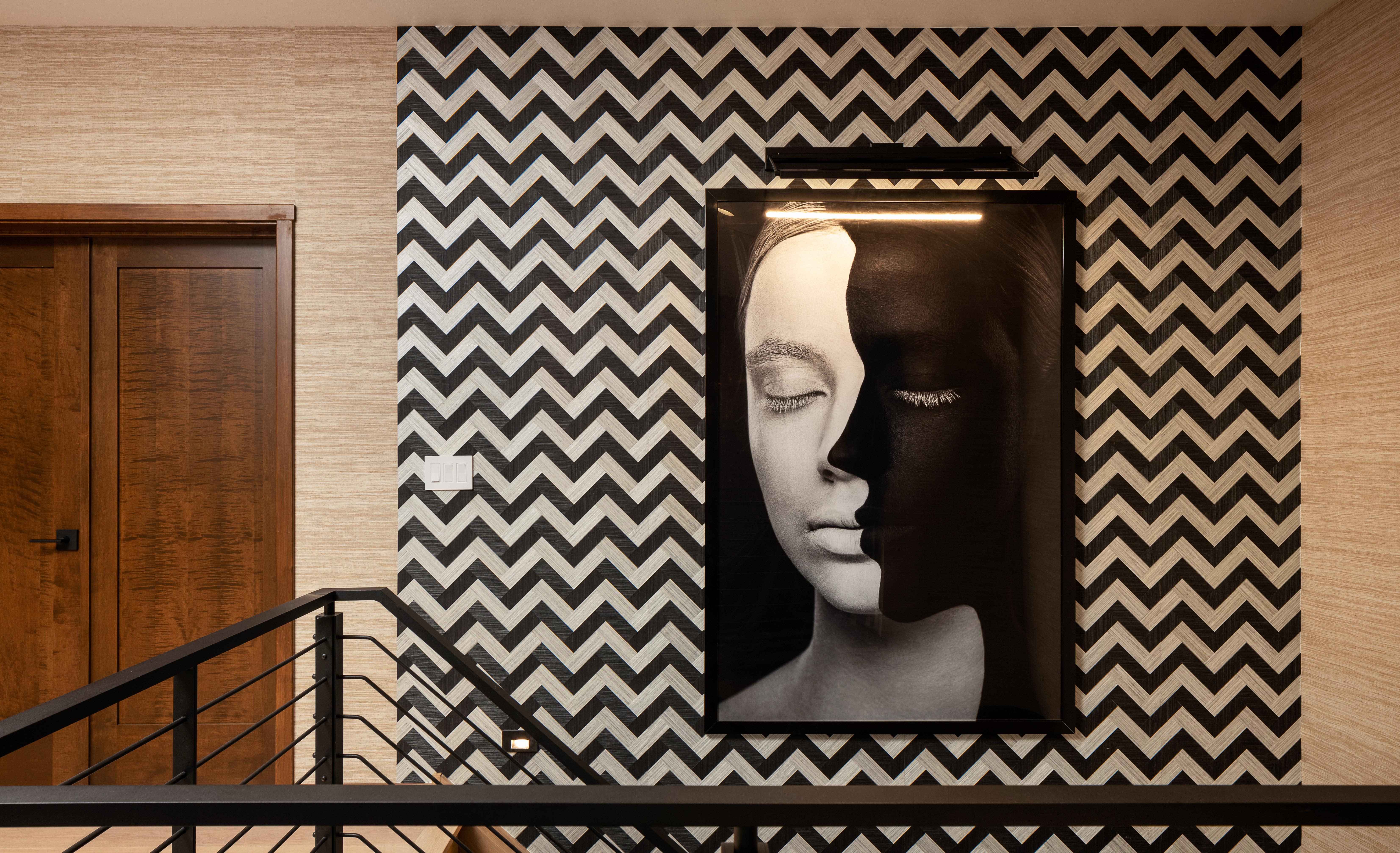 Jahan explains that she used this wallcovering because it felt alive and fit perfectly into her concept. ‘It isn’t just a textured wallpaper that mimics silk. It is visually multidimensional and it provokes an emotion from those who experience it in person. Even before the floors were done and the windows were untaped from painting, the entire room felt alive when covered with the wallcovering on every wall. People would gasp when they entered the space, and I’m not even sure they knew why they liked it so much. Bringing in furnishings and accessories that pulled out the hidden and subtle colours of the wallcovering served to raise the depth and energy of the original concept even more.’