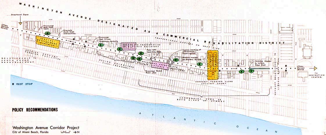 In 1972 I went to Miami Beach with Bob and we discovered South Beach: all Art Deco Cubist, small hotels in pastel colors, shapes like portholes and boomerangs, sunbursts. We wrote to the head of the Miami American Institute of Architects to say how very unique it was, in America and the world. We heard nothing. Then I read in Preservation News about the Miami Design Preservation League and Barbara Capitman who formed it, and she and I became fast friends. Well, three years later we submitted a proposal to re-plan part of South Beach and we gave it a name, the Deco District, akin to the Vieux Carre in New Orleans. Bisecting it was Washington Avenue which was lined with discount outlets and convenience and cheap restaurants. Cuban supermarkets next to Kosher butchers, tawdry but vital. We recommended how to conserve the Deco but evolve, but critics called it the “Deco scam,” they thought it threatened their economy. Afterward I saw the Deco District on TV: Miami Vice. Barbara Capitman was their design advisor!