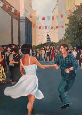 Magee revisits the urban landscapes of 1970s Lurgan, where the intimacy of childhood recollection intersects with the political realities of the Troubles. His works restage these environments through a visual palimpsest of figures from pop and cultural icons such as Bowie’s Ziggy Stardust to the emergent punk scene, alongside spectral presences from his own past. In doing so, Magee creates a dialogue between nostalgia, trauma, and collective imagination.