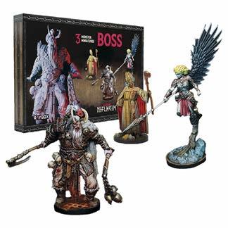 Includes 3 high quality BOSS miniatures designed for the Gates of Niflheim game (scale 40mm to 55mm) but useful for any fantasy game setting of 2835mm. Cardboard carrying case with foam interior and cavities for minis plus more for game components. Miniatures supplied unpainted.
