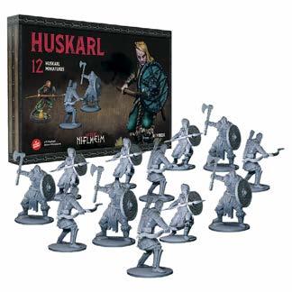Beef up your party. Includes 12 high quality Huskarl (Viking warriors) miniatures designed for the Gates of Niflheim game (scale 35mm) but useful for any fantasy game setting of 28-35mm. The Huskarls are additional troops that you can add to your party of heroes. There are 3 types that can be fielded. These supplement the Huskarl markers that come in the game. Cardboard carrying case with foam interior and cavities for minis plus more for game components.