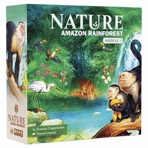 Add the Rainforest module to discover the mysteries of the rainforest, where surprises are concealed behind every leaf in the canopy. Rainforest creates an ecosystem bursting with population. This module adds a fifth round to the game, a new deck of cards, new watering hole, fruit tokens, poison resistance tokens, player aids, and solo rules. It also introduces hidden card play, reflecting the uncertainty that lurks behind every leaf. The Rainforest module is for players who enjoy mystery, deduction, and bluffing in their games.