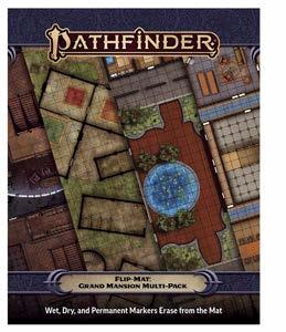 Whether your party is attending a fancy gala for a noted celebrity or they’re planning the heist of a lifetime, you might need a well-appointed mansion for them to explore and this Pathfinder Flip-Mat Multi-Pack has you covered. Two of the four sides show the ground floor and upper floors of the mansion, while the other two depict the basement and the lavish garden grounds. Instead of brushing up on your architecture skills, spread out Pathfinder Flip-Mat: Grand Mansion Multi-Pack on your table and get to the adventure! This set includes two durable, double-sided Flip-Mats, measuring 24" × 30" unfolded and 8" × 10" folded. Usable by experienced GMs and novices alike, this Pathfinder Flip-Mat fits perfectly into any Game Master’s arsenal!