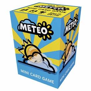 In Meteo, players try to pick the best weather conditions for a last-minute vacation. At the start, six visible “weather” cards are randomly paired with hidden “sky” cards of different colors, and each player gets to secretly look at one. The “sky” cards are revealed one by one. At any moment, a player can interrupt the process by saying “I’m going!” to stop the reveals and claim the cards they think will earn them the most points.
