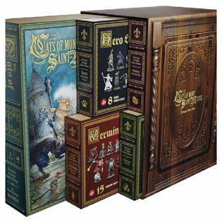 Includes 15 high quality unique Vermin Army miniatures for the Cats of Mont Saint Michel (scale 35mm+) but useful for any fantasy game setting of 2835mm. Cardboard carrying case with foam interior and cavities for minis. Miniatures supplied unpainted.