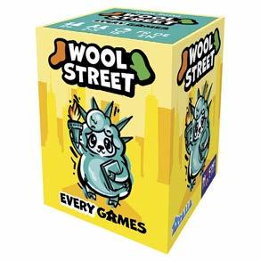In Wool Street, players buy and sell cards representing woolen garments in six different types, hoping to collect those that score points while selling off those that bring penalties. On their turn, players draw a card and must place it on a pile of the same garment type (e.g., sweaters with sweaters). Then, they can choose to sell a garment card by placing it in the center of the table or buy one from the center. The first pile to reach 7 cards scores 2 points per card of that type for players who bought them, the second pile scores 1 point, but the fourth and fifth piles result in point losses!