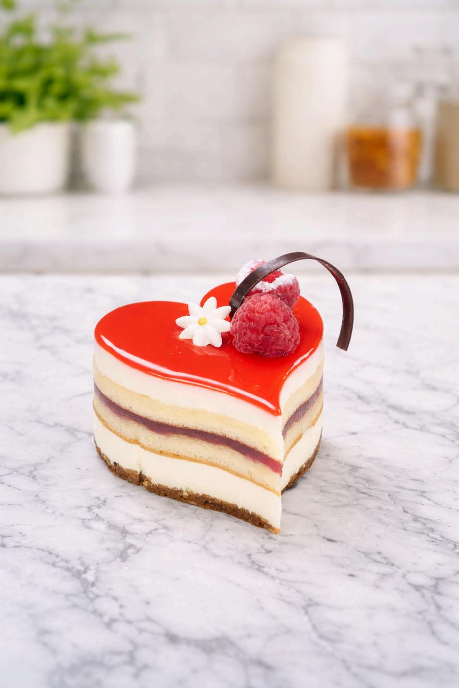 Our Mini Ganache Cheese Hearts offer a luxurious twist on a classic cheesecake.