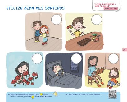 Adhesivos. En este apartado encontrarás material didáctico en forma de stickers para pegar en diferentes actividades en los distintos capítulos. Orienta a los niños para utilizar este material. Guíalos para que peguen lo que necesitan de la hoja y preserven lo que se utilizará en otra oportunidad.