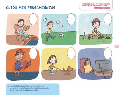 que representan el cuidado del cuerpo. Una vez finalizada la actividad, vuelvan a repasar el canto aprendido. Invítalos a tomar el compromiso de cuidar de su cuerpo a través de los 8 remedios naturales.