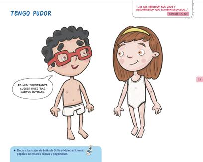 Tengo pudor. La lectura bíblica se encuentra en Génesis 3:7. En esta página se analiza lo ocurrido en el jardín del Edén. Explica a los estudiantes que en el principio, cuando Adán y Eva fueron creados, eran perfectos, con una mente completamente distinta a como ahora la conocemos.